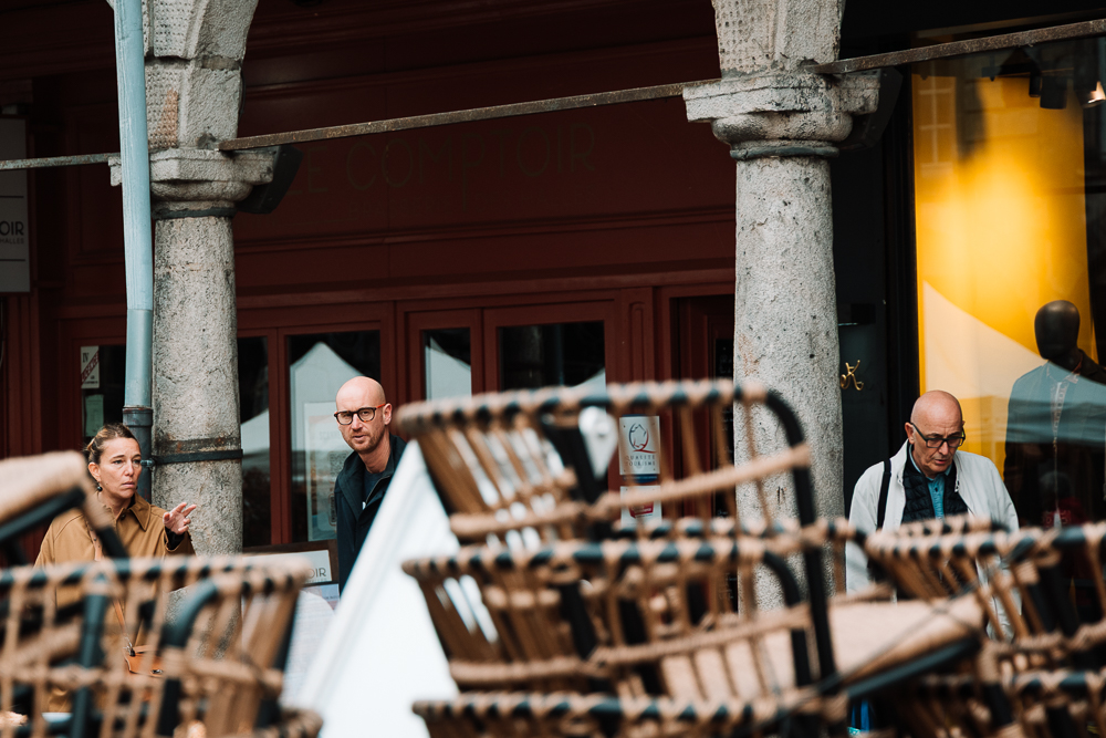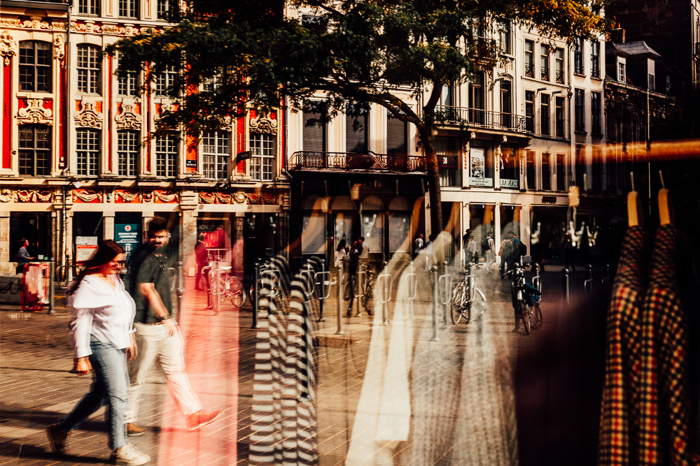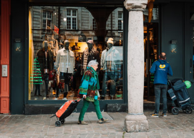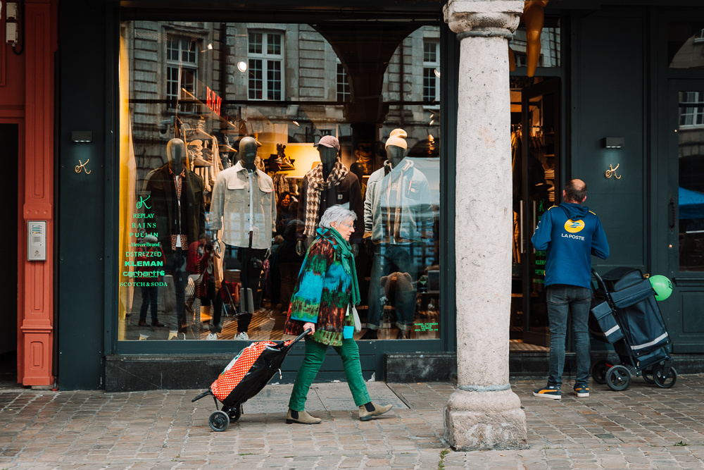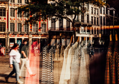 Le deuxième volet se déploie dans les rues d’Arras, ville reconstruite qui porte les stigmates et la fierté de son histoire. Entre ses places baroques flamandes et ses quartiers plus modestes, la ville offre un théâtre urbain où se croisent étudiants, commerçants, passants anonymes. C’est une photographie de la traversée, du passage, dans une ville où l’architecture dialogue constamment avec ceux qui l’habitent.
