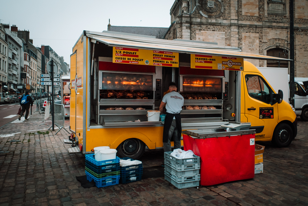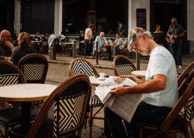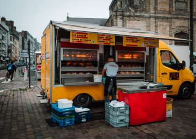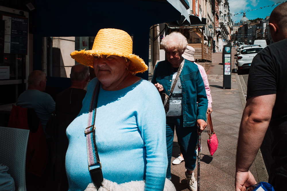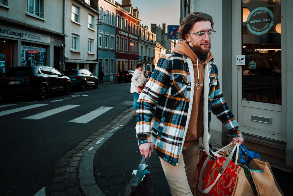Le premier volet s’ancre dans l’atmosphère brute et authentique de Boulogne-sur-Mer, premier port de pêche français. C’est avant tout une ville ouvrière, une ville de labeur où la mer dicte son rythme. Dans les quartiers populaires, sur les marchés animés, dans les rues commerçantes du centre, se dessine une humanité du quotidien : travailleurs du poisson, habitants des quartiers modestes, retraités sur les bancs, enfants dans les rues. Ici, la ville populaire se vit pleinement, sans artifice, entre le béton des quais et les façades des vieilles maisons.